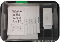 To get started, I photocopy & cut a class set. I only pass out one page. I collect it when they are finished, so the paper stays wrinkle free. We focus on one lesson each Friday, and review the concept throughout the week. I start with Earth and the globe, then the continents, country, state, city, and finally my address. I laminate the pages and have a parent cut & collate. Then, I bind them. They are beautiful on their desks during open house. Best of all, the kids LOVE creating their books!